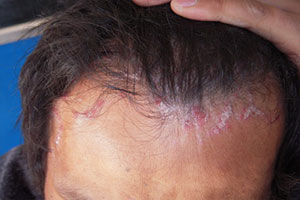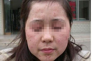 1、面部毛囊炎: 初起为红色丘疹,逐渐演变成丘疹性脓疱,孤立散在,瘙痒、疼痛、抓挠易流血、难以入眠、反复发作。